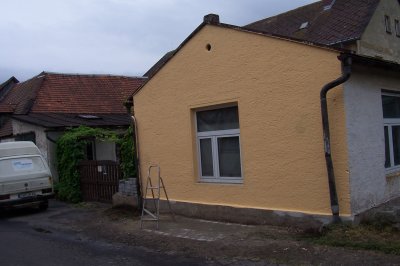 Die Aussenansicht mit den neuen Fenstern und einem Teil des Aussenanstrich`s