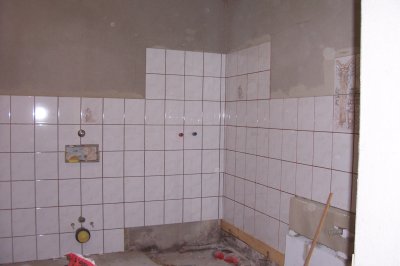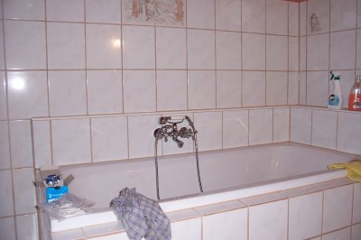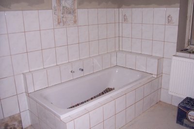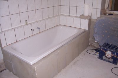 Wir haben zuerst die Badewannenauflagen gemauert und dann die Wände gefliest, so konnte man am besten arbeiten, ohne in der Badewanne rumklettern zu müssen...