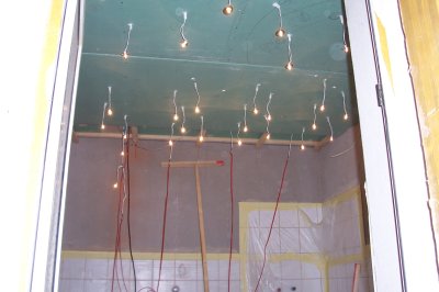 Die Unterkonstruktion für die Gipskartonplatten war schon fertig, nun ging es ans einpassen der ganzen Lichter in die Platten und dann die Montage auf der Decke.....