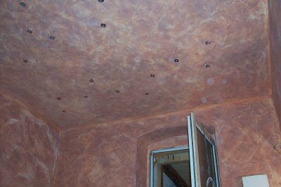 bevor es mit den Wänden weiterging, hab ich erst den Sternenhimmel gemacht, damit man den Übergang von den Wänden zu der Decke besser verspachteln konnte....