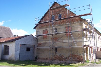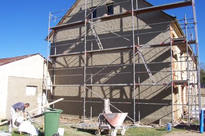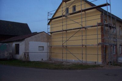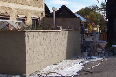 Nachdem ich den kpl. alten Putz abgeschlagen hatte, war es so weit zum Verputzen, was ein paar Kumpels vom Fach für mich erledigten......