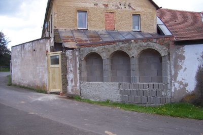 Das alte Tor der Maschinenhalle (links) hab ich zugemauert, denn dahinter kommen die Toiletten der Locanta......auch nicht benötigte Fenster im Giebel hab ich zugemauert........